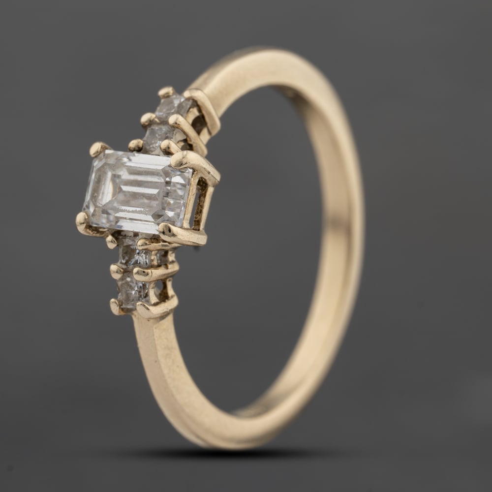 Second Hand 9ct Yellow Gold Cubic Zirconia Emerald Cut Centre Stone Five Stone Ring 41103700 Second Hand 9ct Yellow Gold Cubic Zirconia Emerald Cut Centre Stone Five Stone Ring 41103700