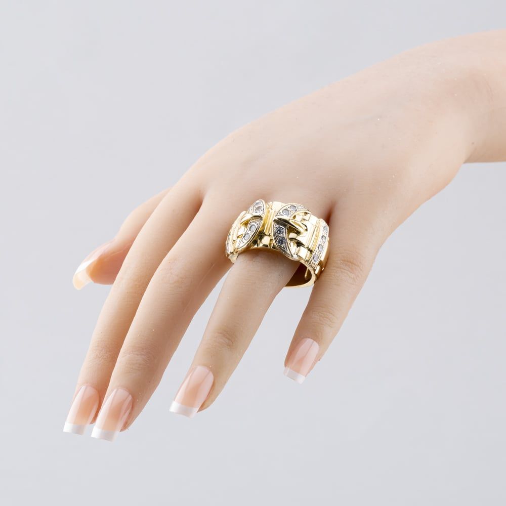9ct Yellow Gold Cubic Zirconia Heavy Double Buckle Ring