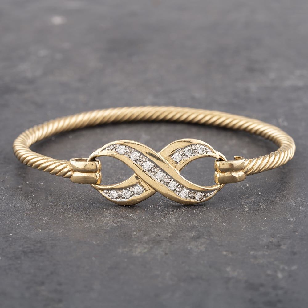 9ct Yellow Gold Cubic Zirconia Hook Over Gemstone Bangle