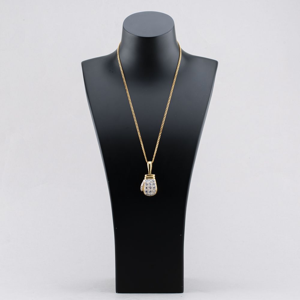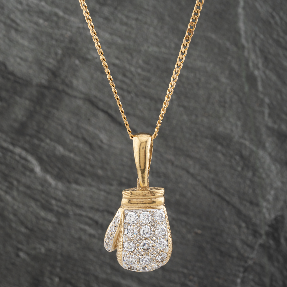 9ct Yellow Gold Cubic Zirconia Large Boxing Glove Pendant & 20 Inch Curb Chain