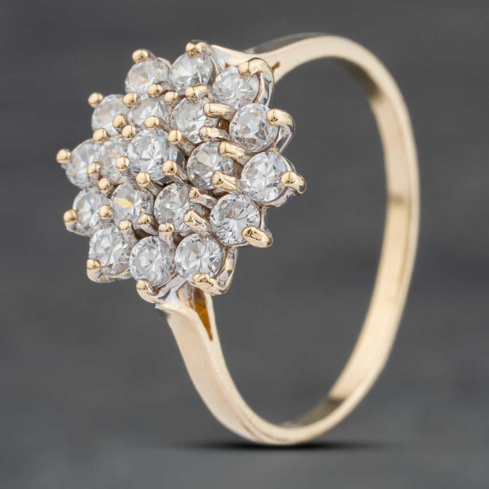 <a href="https://www.thbaker.co.uk/stores/"><b>Click here to find your <font color="6d1a42">nearest store</font></b></a>Second Handhttps://www.thbaker.co.uk/media/catalog/product/4/1/41-10-3994_model_1.jpgcondition:Yesdisc_no_stock:NoYesNo41103994Second Hand41103994LadiesT H Baker Packaging12 Month WarrantyNoRing2.8gTCluster9ct Yellow GoldGoldCubic ZirconiaWhite{"name":"Klarna","text":"3 payments of \u00a391.67","imageUrl":"https:\/\/www.thbaker.co.uk\/media\/nosto\/klarna.png"}Second Hand 9ct Yellow Gold Cubic Zirconia Large Cluster Ring41-10-39942025-12-16 00:00:000[{"path":"\/Jewellery","url":"\/jewellery\/"},{"path":"\/Jewellery\/Rings","url":"\/rings\/"},{"path":"\/Jewellery\/Rings\/Gold Rings","url":"\/gold-rings\/"},{"path":"\/Seasonal\/Christmas Collection","url":"\/christmas-collection\/"},{"path":"\/Seasonal\/Christmas Collection\/Gifts For Her","url":"\/christmas-gifts-for-her\/"},{"path":"\/Second Hand Collection","url":"\/second-hand\/"},{"path":"\/Second Hand Collection\/Second Hand Jewellery","url":"\/second-hand-jewellery\/"},{"path":"\/Second Hand Collection\/Second Hand Rings","url":"\/second-hand-rings\/"},{"path":"\/Jewellery\/Gold Jewellery","url":"\/gold-jewellery\/"},{"path":"\/Second Hand Collection\/Second Hand Jewellery\/Second Hand Yellow Gold","url":"\/second-hand-yellow-gold-jewellery\/"},{"path":"\/Second Hand Collection\/Second Hand Rings\/Second Hand Cluster Rings","url":"\/second-hand-cluster-rings\/"},{"path":"\/Second Hand Collection\/Second Hand Ladies","url":"\/second-hand-ladies-collection\/"},{"path":"\/Second Hand Collection\/Second Hand Gemstones","url":"\/second-hand-gemstone-jewellery\/"},{"path":"\/Second Hand Collection\/Second Hand Rings\/Second Hand Gold Rings","url":"\/second-hand-gold-rings\/"},{"path":"\/Second Hand Collection\/Second Hand Rings\/Second Hand Yellow Gold Rings","url":"\/second-hand-yellow-gold-rings\/"},{"path":"\/Jewellery\/Ladies Jewellery","url":"\/ladies-jewellery\/"},{"path":"\/Jewellery\/Gold Jewellery\/Yellow Gold Rings","url":"\/yellow-gold-rings\/"},{"path":"\/Jewellery\/Gold Jewellery\/Yellow Gold Rings\/Yellow Gold CZ Rings","url":"\/yellow-gold-cz-rings\/"},{"path":"\/Second Hand Collection\/Second Hand Gold","url":"\/second-hand-gold\/"},{"path":"\/Second Hand Collection\/Second Hand Jewellery\/Second Hand 9ct","url":"\/second-hand-9ct-jewellery\/"},{"path":"\/Second Hand Collection\/Second Hand Latest Additions","url":"\/second-hand-latest-additions\/"},{"path":"\/Second Hand Collection\/Second Hand Rings\/Second Hand Ladies Rings","url":"\/second-hand-ladies-rings\/"},{"path":"\/Second Hand Collection\/Second Hand Gemstones\/Second Hand Cubic Zirconia","url":"\/second-hand-cubic-zirconia-jewellery\/"},{"path":"\/Seasonal\/Christmas Collection\/Pre Loved Christmas Gifts","url":"\/pre-loved-christmas-gifts\/"},{"path":"\/Free Gift","url":"\/free-gift\/"}]2025-12-16
