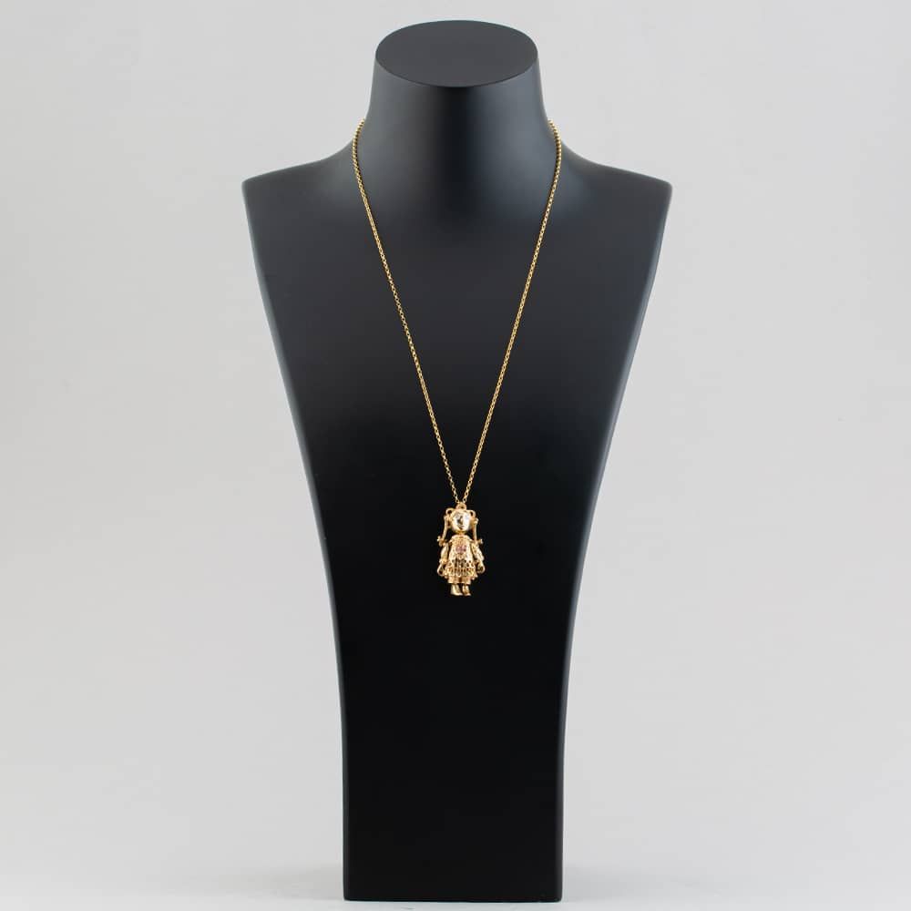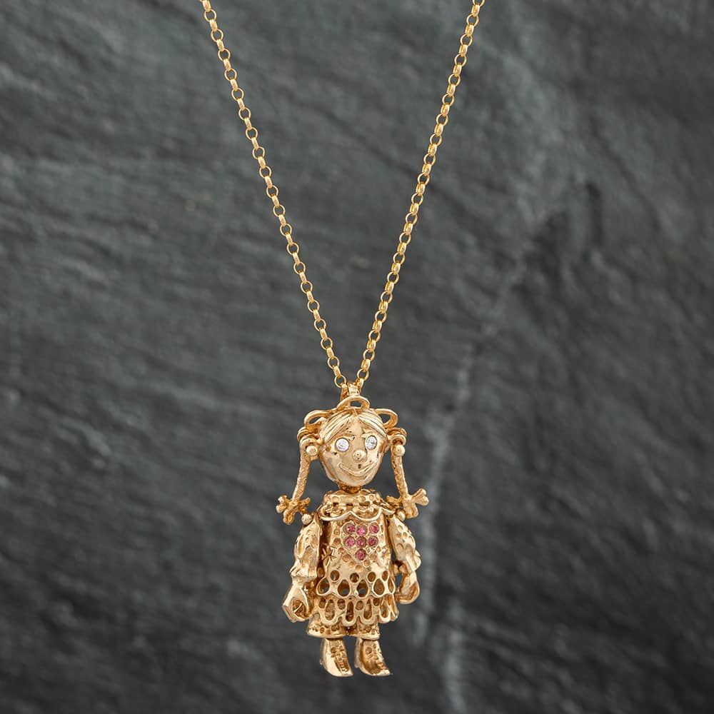 9ct Yellow Gold Cubic Zirconia Large Ragdoll Pendant & 21 Inch Belcher Chain