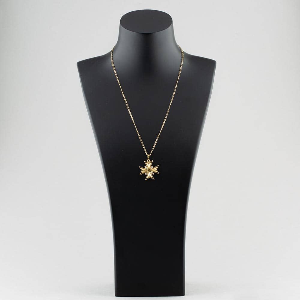 9ct Yellow Gold Cubic Zirconia Maltese Cross Pendant & 20 Inch Curb Chain