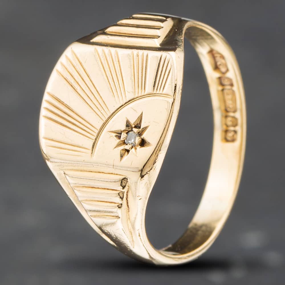 9ct Yellow Gold Cubic Zirconia Oblong Sunray Signet Ring