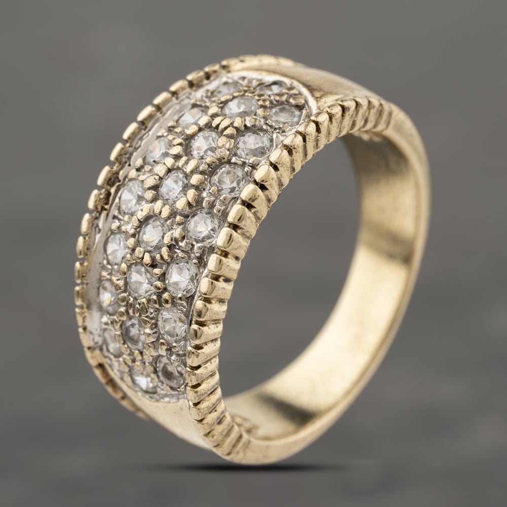 <a href="https://www.thbaker.co.uk/stores/"><b>Click here to find your <font color="6d1a42">nearest store</font></b></a>Second Handhttps://www.thbaker.co.uk/media/catalog/product/4/1/41-10-3937_model_1.jpgcondition:Yesdisc_no_stock:NoYesNo41103937Second Hand41103937LadiesT H Baker Packaging12 Month WarrantyNoRing7.0gQDress9ct Yellow GoldGoldCubic ZirconiaWhite{"name":"v12_finance","text":"Or from \u00a314 per month","imageUrl":"https:\/\/www.thbaker.co.uk\/media\/nosto\/v12-finance.png"}Second Hand 9ct Yellow Gold Cubic Zirconia Pave Dress Ring41-10-39372025-12-06 00:00:000[{"path":"\/Jewellery","url":"\/jewellery\/"},{"path":"\/Jewellery\/Rings","url":"\/rings\/"},{"path":"\/Jewellery\/Rings\/Gold Rings","url":"\/gold-rings\/"},{"path":"\/Second Hand Collection","url":"\/second-hand\/"},{"path":"\/Second Hand Collection\/Second Hand Jewellery","url":"\/second-hand-jewellery\/"},{"path":"\/Second Hand Collection\/Second Hand Rings","url":"\/second-hand-rings\/"},{"path":"\/Jewellery\/Gold Jewellery","url":"\/gold-jewellery\/"},{"path":"\/Second Hand Collection\/Second Hand Jewellery\/Second Hand Yellow Gold","url":"\/second-hand-yellow-gold-jewellery\/"},{"path":"\/Second Hand Collection\/Second Hand Ladies","url":"\/second-hand-ladies-collection\/"},{"path":"\/Second Hand Collection\/Second Hand Gemstones","url":"\/second-hand-gemstone-jewellery\/"},{"path":"\/Second Hand Collection\/Second Hand Rings\/Second Hand Gold Rings","url":"\/second-hand-gold-rings\/"},{"path":"\/Second Hand Collection\/Second Hand Rings\/Second Hand Yellow Gold Rings","url":"\/second-hand-yellow-gold-rings\/"},{"path":"\/Jewellery\/Ladies Jewellery","url":"\/ladies-jewellery\/"},{"path":"\/Second Hand Collection\/Second Hand Rings\/Second Hand Dress Rings","url":"\/second-hand-dress-rings\/"},{"path":"\/Jewellery\/Gold Jewellery\/Yellow Gold Rings","url":"\/yellow-gold-rings\/"},{"path":"\/Jewellery\/Gold Jewellery\/Yellow Gold Rings\/Yellow Gold Dress Rings","url":"\/yellow-gold-dress-rings\/"},{"path":"\/Jewellery\/Gold Jewellery\/Yellow Gold Rings\/Yellow Gold CZ Rings","url":"\/yellow-gold-cz-rings\/"},{"path":"\/Free Gift Card - When you spend \u00a3500+","url":"\/free-gift-card\/"},{"path":"\/Second Hand Collection\/Second Hand Gold","url":"\/second-hand-gold\/"},{"path":"\/Second Hand Collection\/Second Hand Jewellery\/Second Hand 9ct","url":"\/second-hand-9ct-jewellery\/"},{"path":"\/Second Hand Collection\/Second Hand Rings\/Second Hand Ladies Rings","url":"\/second-hand-ladies-rings\/"},{"path":"\/Second Hand Collection\/Second Hand Gemstones\/Second Hand Cubic Zirconia","url":"\/second-hand-cubic-zirconia-jewellery\/"},{"path":"\/Free Gift With Purchase Products","url":"\/free-gift-with-purchase-products\/"},{"path":"\/\u00a350 Gift Card (\u00a3500-\u00a3999.99)","url":"\/50-gift-card-500-999-99\/"}]2025-12-06
