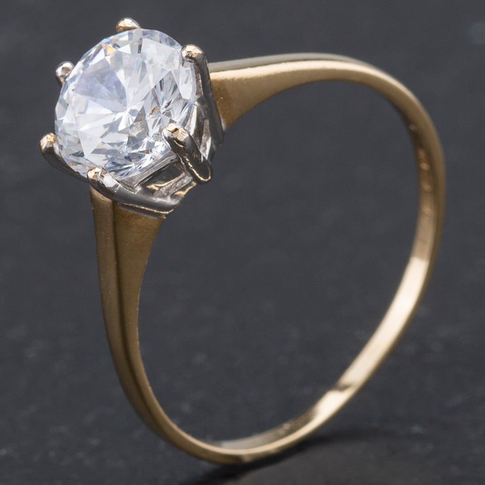 9ct Yellow Gold 6 Claw Cubic Zirconia Single Stone Ring
