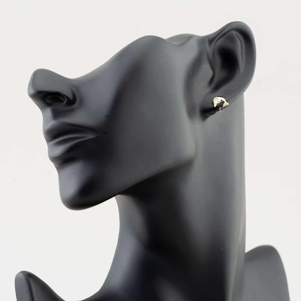 9ct Yellow Gold Cubic Zirconia Small Dolphin Stud Earrings