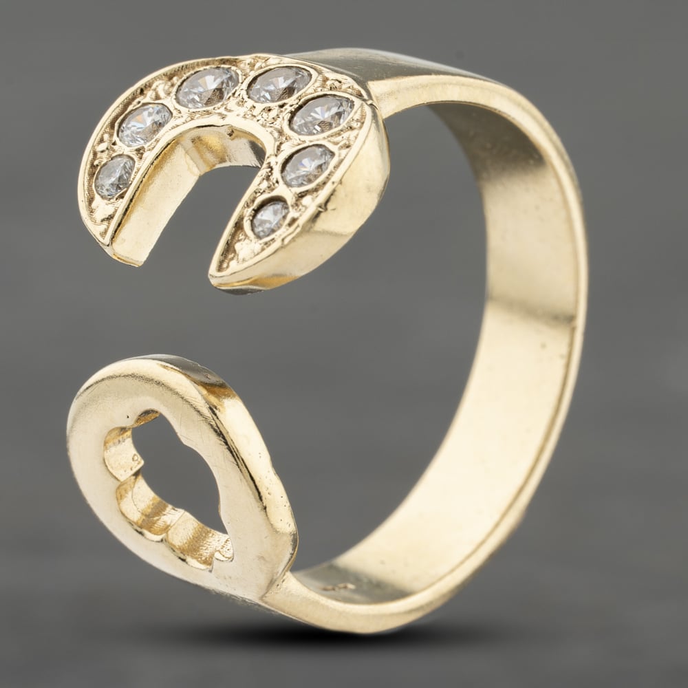 9ct Yellow Gold Cubic Zirconia Spanner Signet Ring
