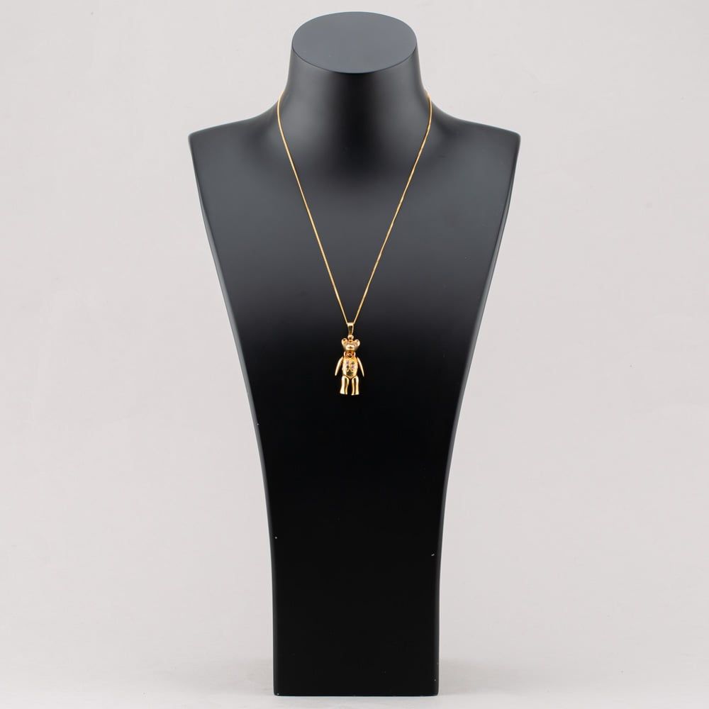9ct Yellow Gold Cubic Zirconia Teddy Pendant & 18 Inch Curb Chain