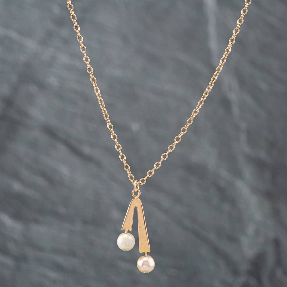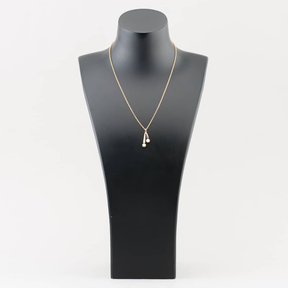 9ct Yellow Gold Cultured Pearl Double Dropper Pendant & 18 Inch Trace Chain
