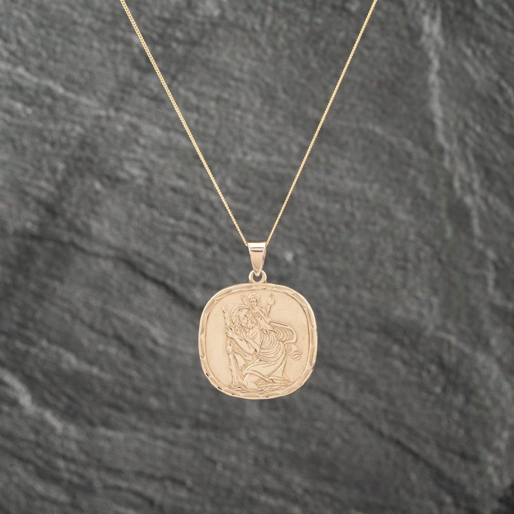 Second Hand 9ct Yellow Gold Cushion Shaped St Christopher Pendant & 18 Inch Curb Chain 41142976 Second Hand 9ct Yellow Gold Cushion Shaped St Christopher Pendant & 18 Inch Curb Chain 41142976
