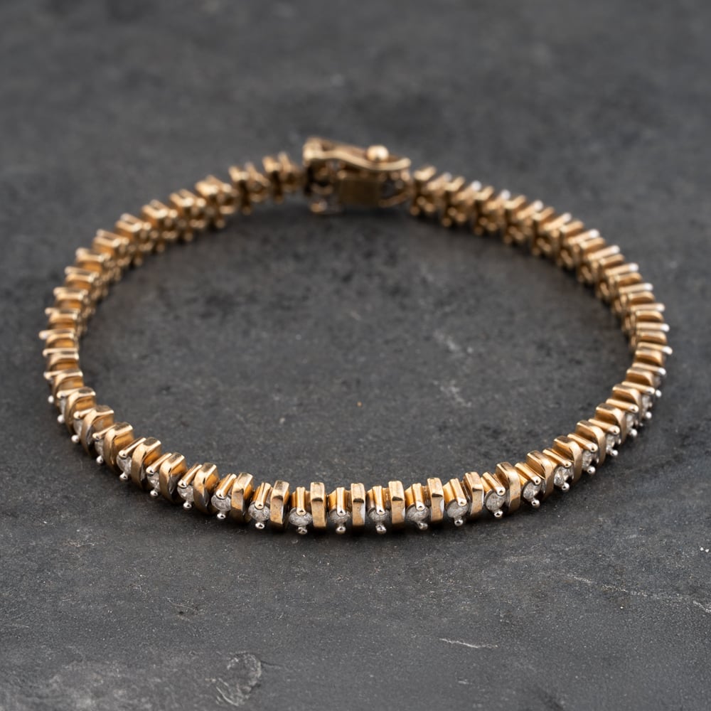 Second Hand 9ct Yellow Gold Diamond 7 Inch Tennis Bracelet 41281654