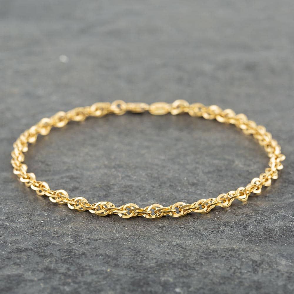 9ct Yellow Gold Diamond Cut 7.5 Inch Rope Chain Bracelet