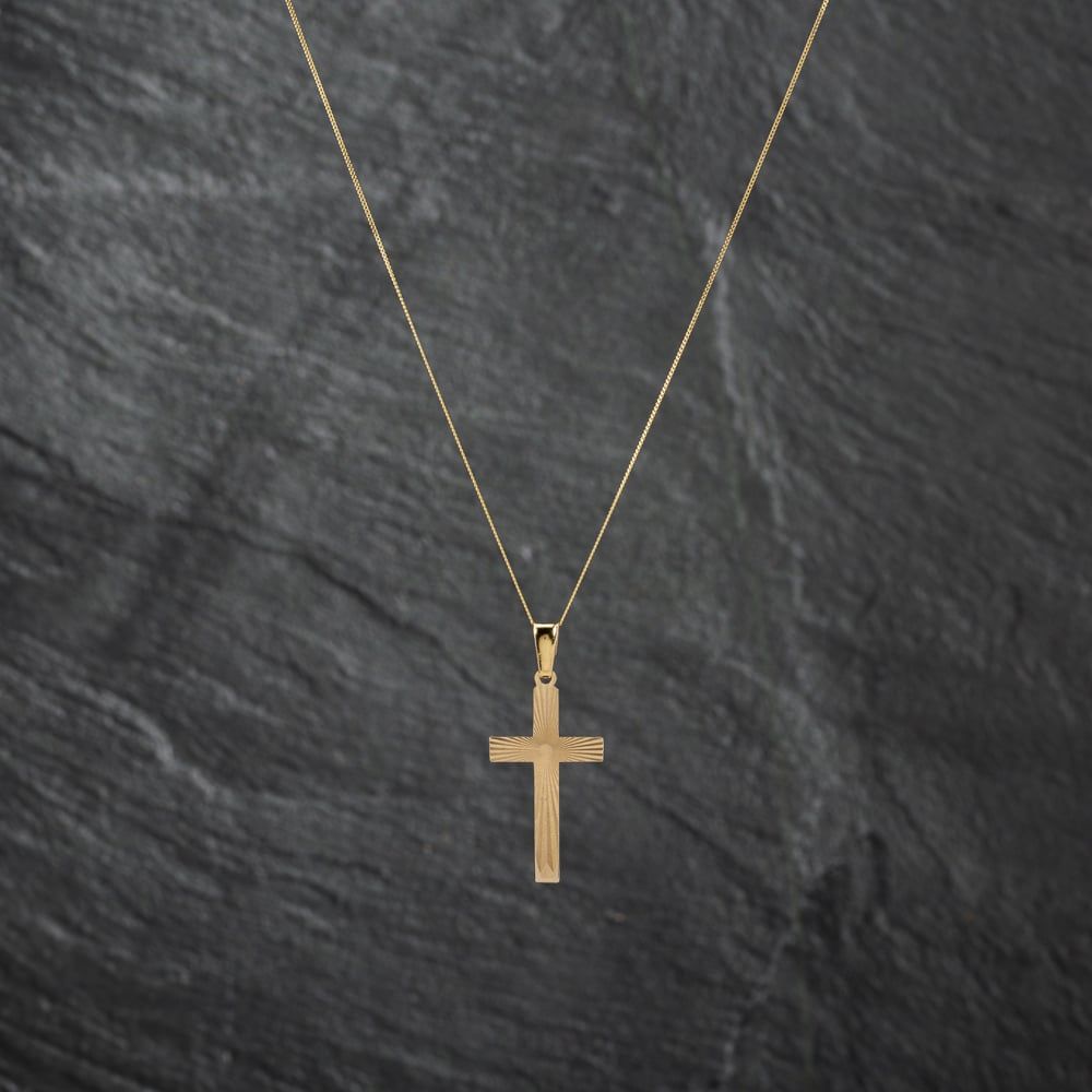 9ct Yellow Gold Diamond Cut Spray Cross Pendant & 18 Inch Curb Chain