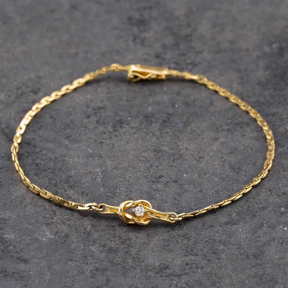 Second Hand 9ct Yellow Gold Diamond Knot Fancy 7 Inch Curb Bracelet 41061301 Second Hand 9ct Yellow Gold Diamond Knot Fancy 7 Inch Curb Bracelet 41061301
