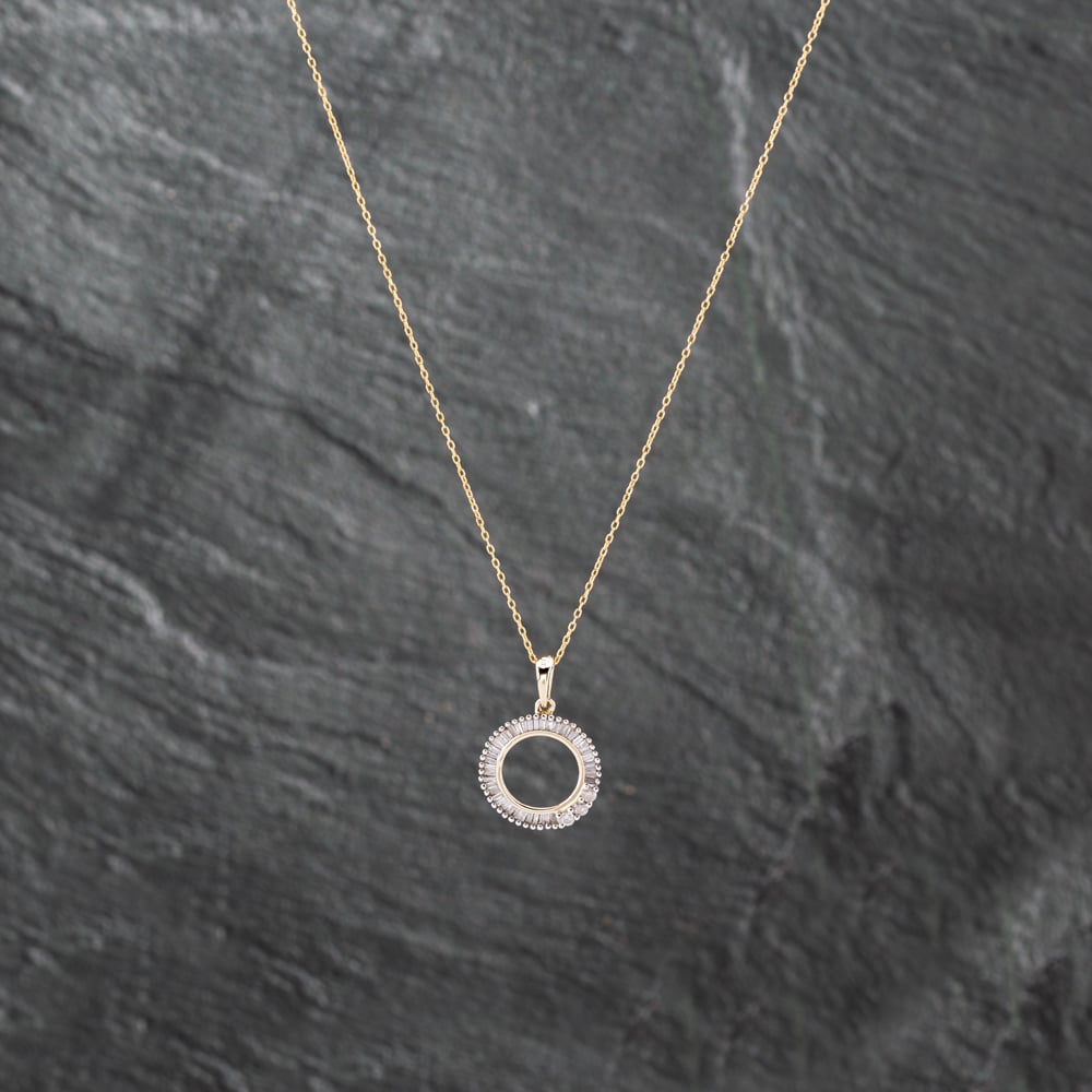 Second Hand 9ct Yellow Gold Diamond Open Circle Pendant & 18 Inch Trace Chain 41142664 Second Hand 9ct Yellow Gold Diamond Open Circle Pendant & 18 Inch Trace Chain 41142664