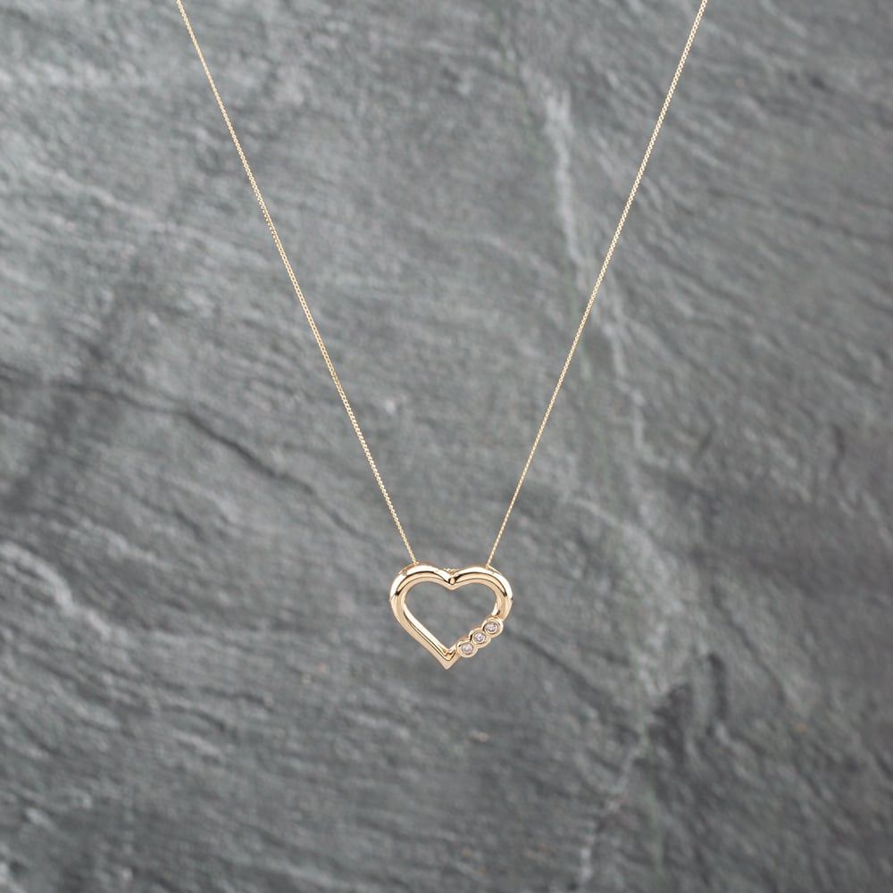 Second Hand 9ct Yellow Gold Diamond Open Heart Pendant & 18 Inch Curb Chain 41142934 Second Hand 9ct Yellow Gold Diamond Open Heart Pendant & 18 Inch Curb Chain 41142934