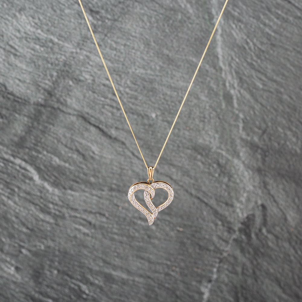 Second Hand 9ct Yellow Gold Diamond Open Heart Pendant & 18 Inch Curb Chain 41142945