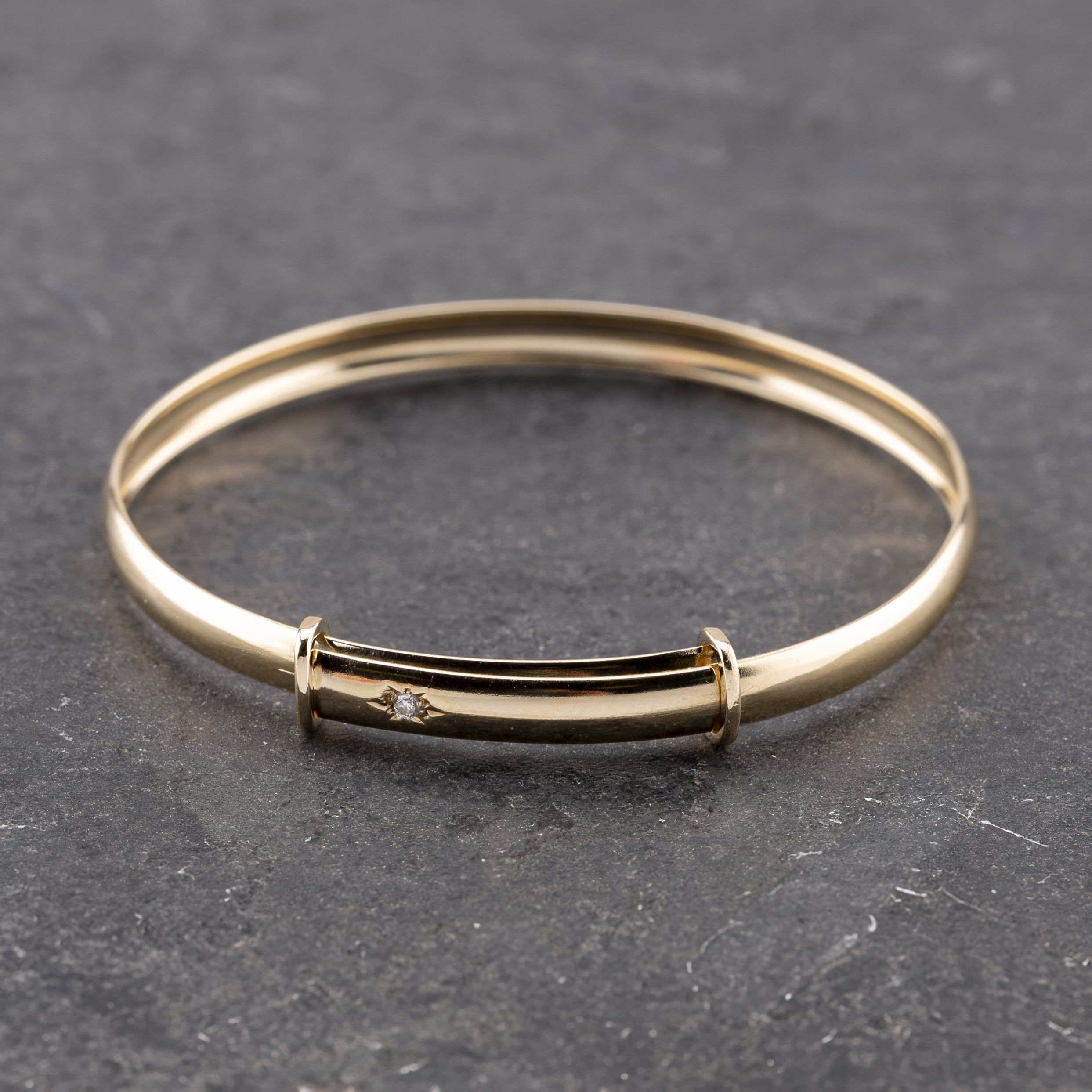 9ct Yellow Gold Diamond Plain Small Expandable Bangle