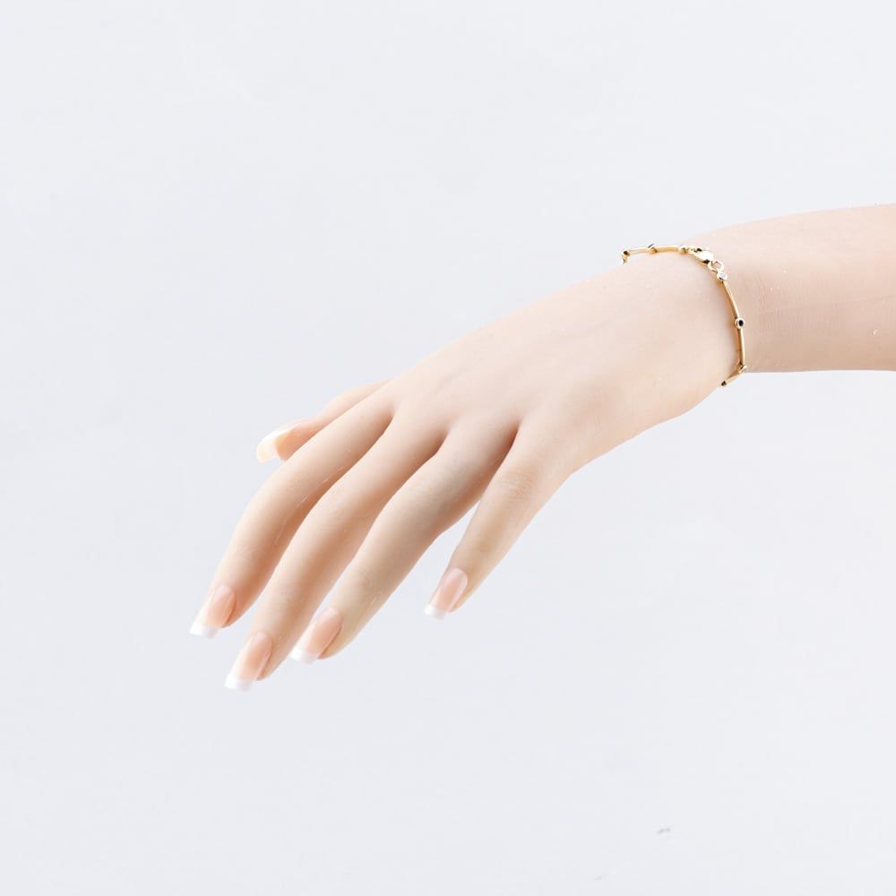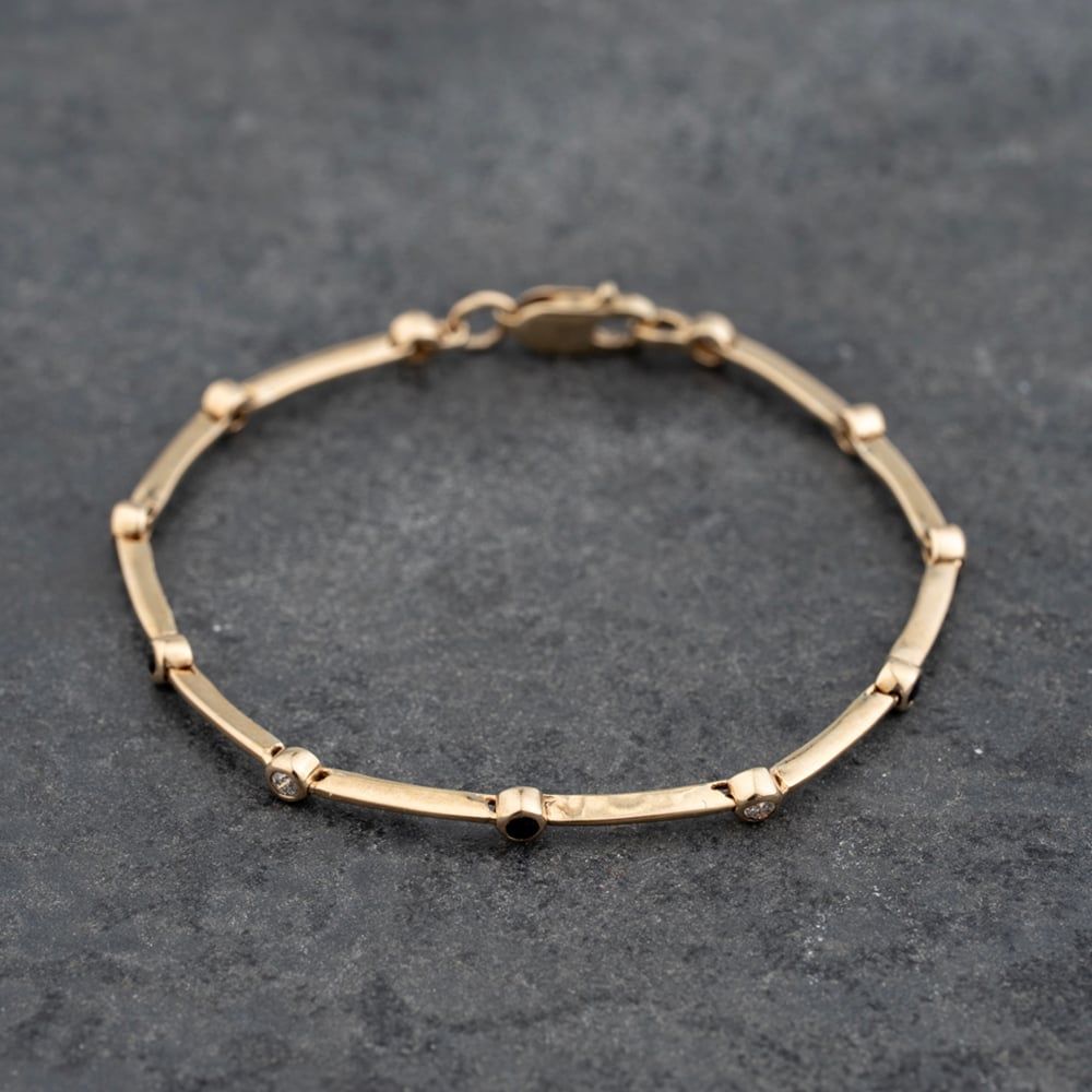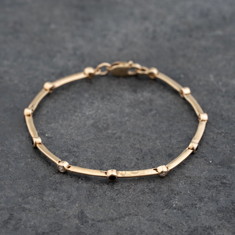 9ct Yellow Gold Diamond & Sapphire Articulating 6.5 Inch Bar Bracelet