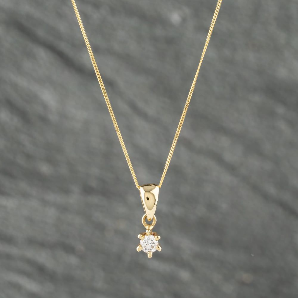 Second Hand 9ct Yellow Gold Diamond Single Stone Pendant & 18 Inch Curb Chain 41142490 Second Hand 9ct Yellow Gold Diamond Single Stone Pendant & 18 Inch Curb Chain 41142490