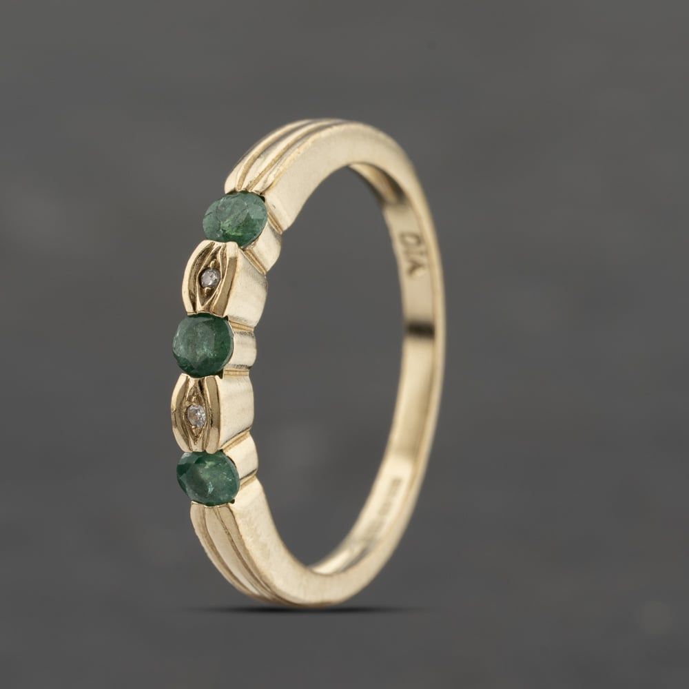 9ct Yellow Gold Emerald & 0.01ct Diamond Five Stone Ring