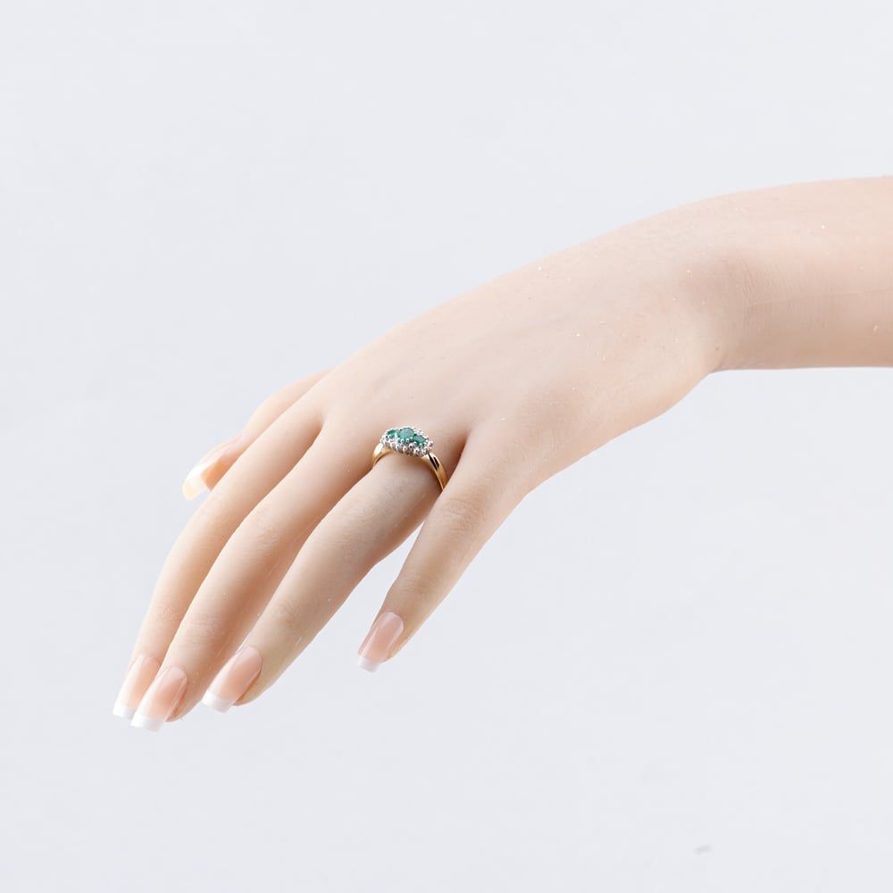 Second Hand 9ct Yellow Gold Emerald & 0.16ct Diamond Boat Shaped Cluster Ring 43371082 Second Hand 9ct Yellow Gold Emerald & 0.16ct Diamond Boat Shaped Cluster Ring 43371082