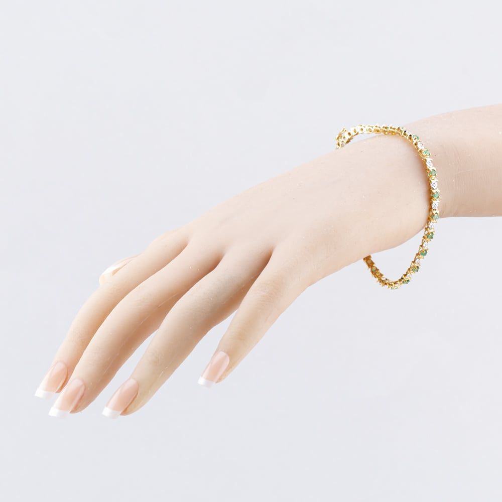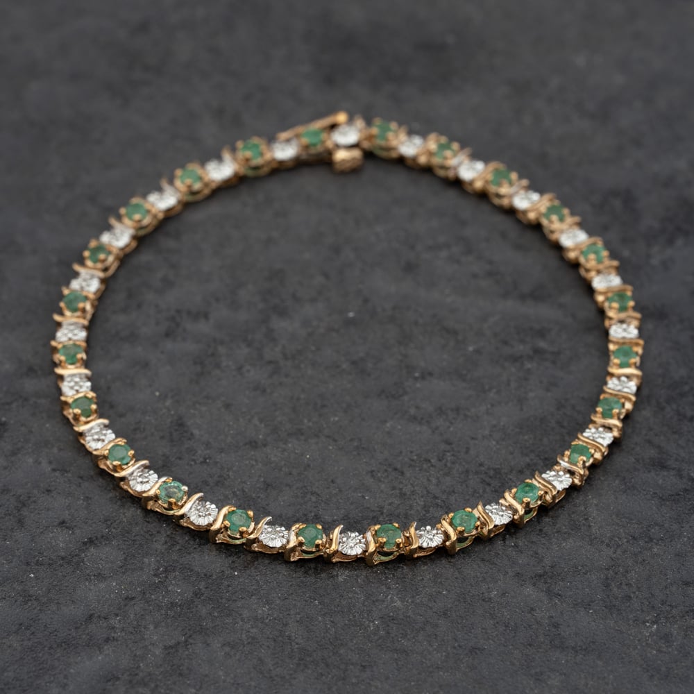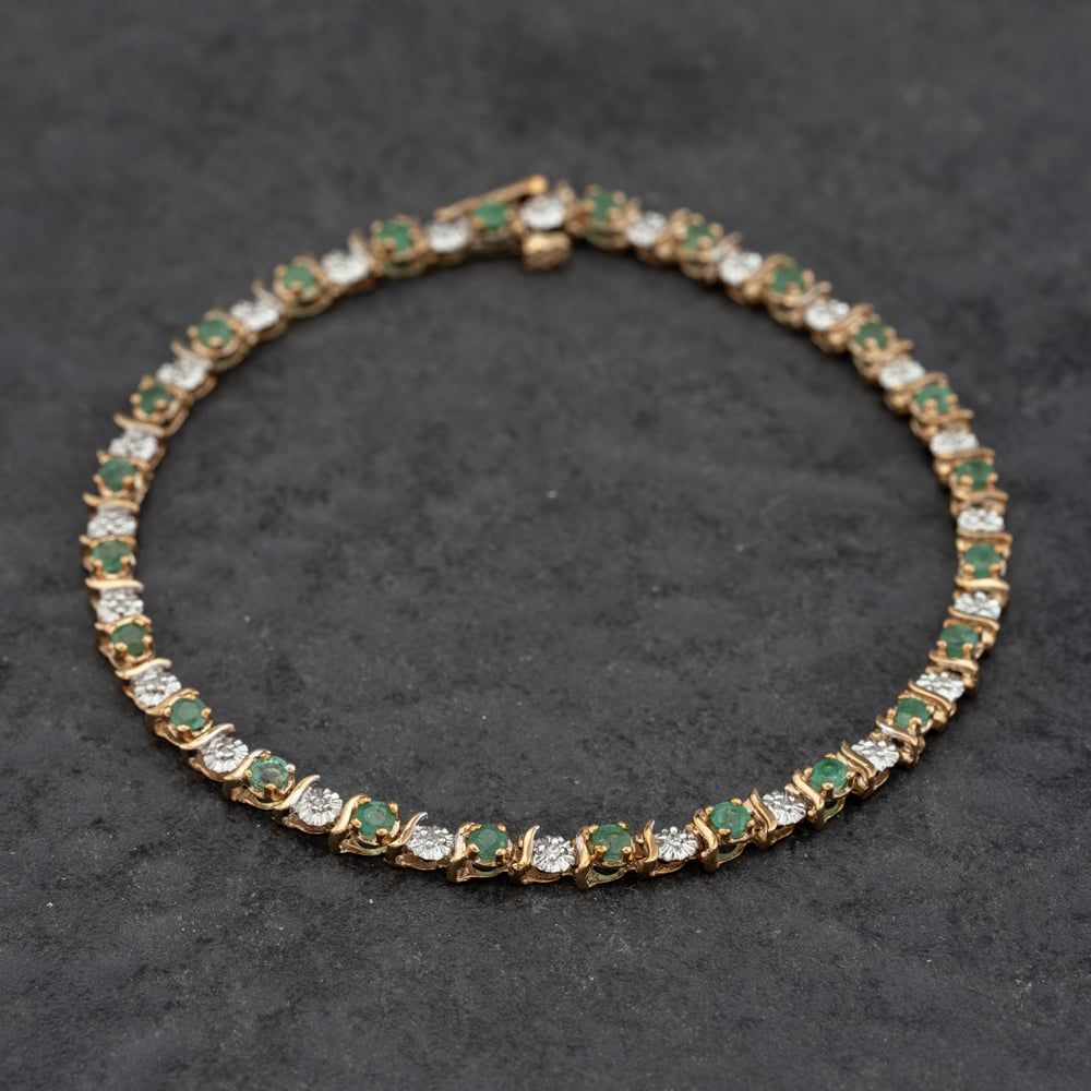 9ct Yellow Gold Emerald & Diamond 7.5 Inch Bracelet
