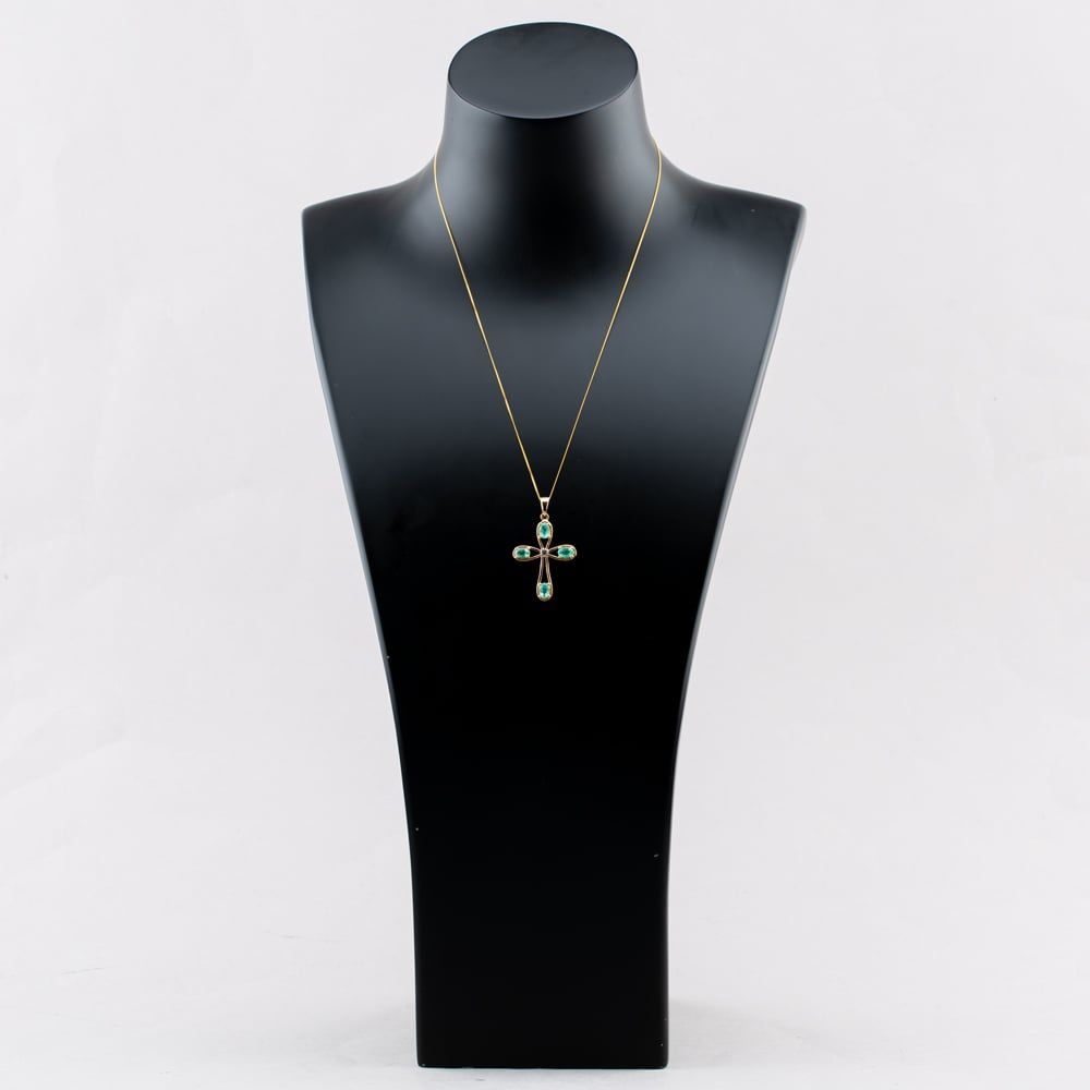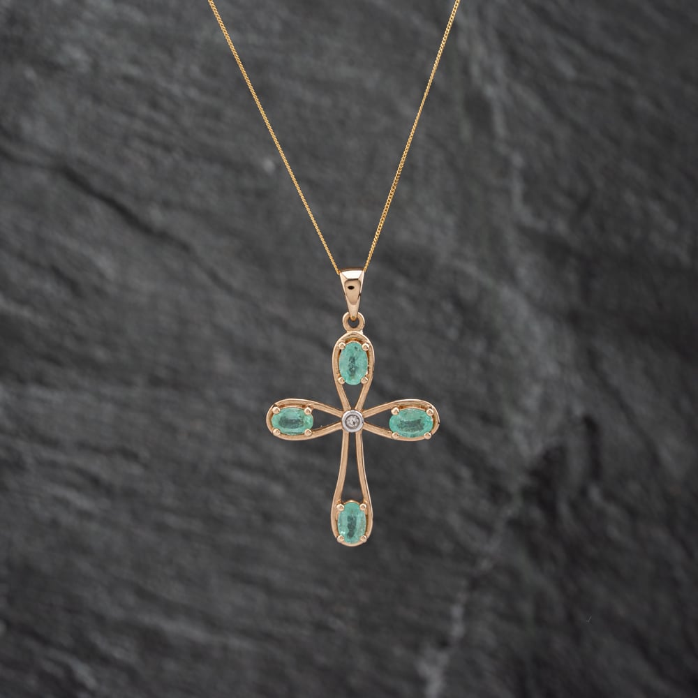 Second Hand 9ct Yellow Gold Emerald & White Topaz Cross Pendant & 18 Inch Curb Chain 41142667 Second Hand 9ct Yellow Gold Emerald & White Topaz Cross Pendant & 18 Inch Curb Chain 41142667