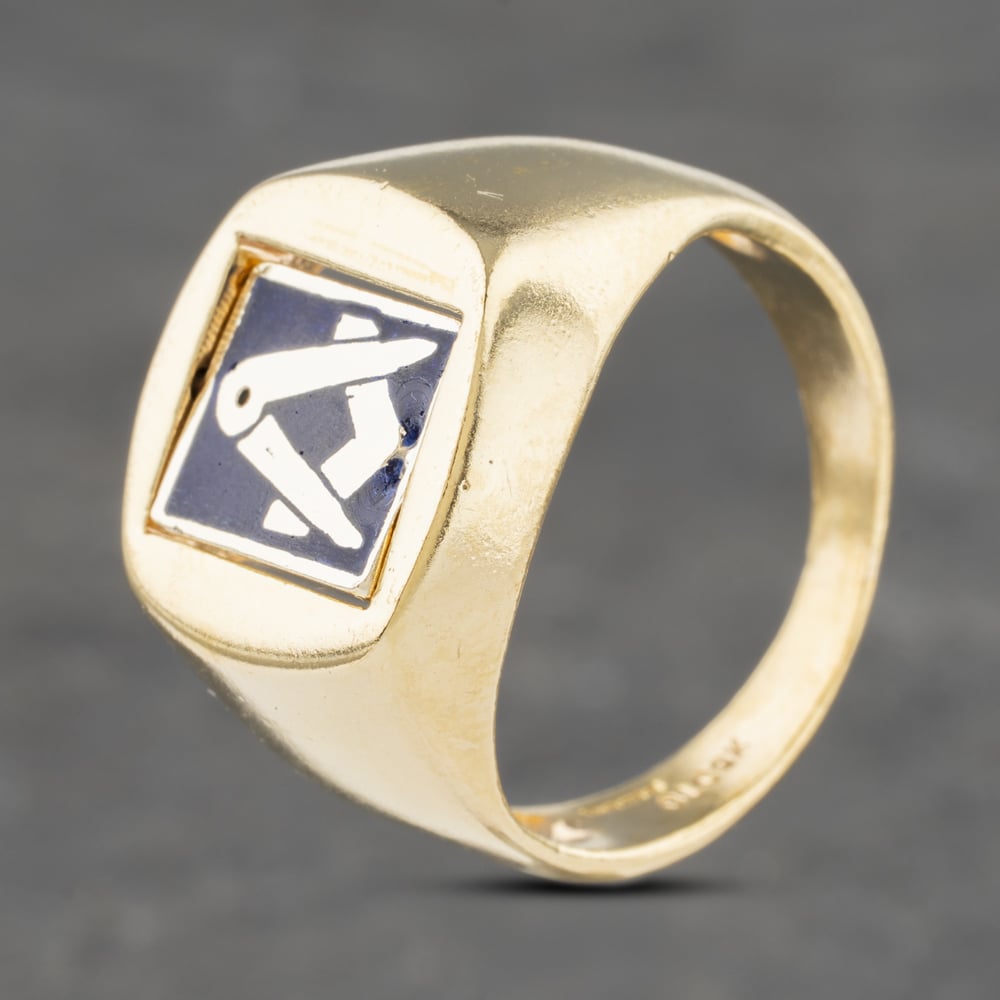 9ct Yellow Gold Enamel Masonic Reversable Signet Ring