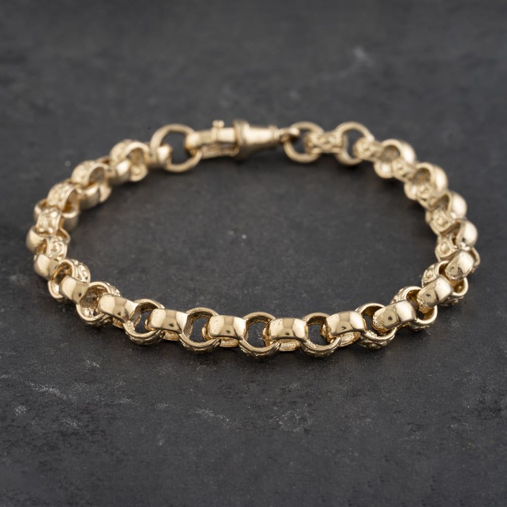 9ct Yellow Gold Engraved And Plain 7.5 Inch Belcher Chain Bracelet