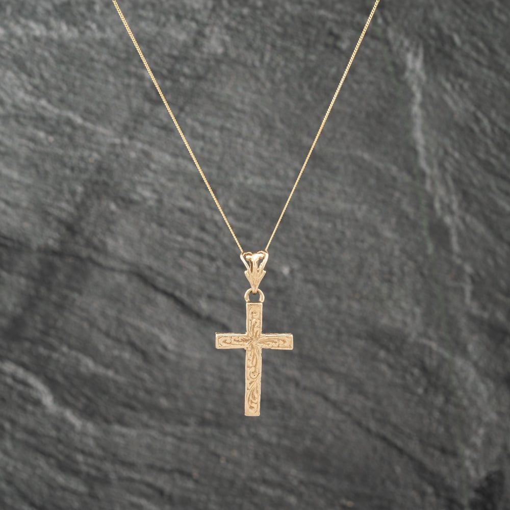 Second Hand 9ct Yellow Gold Engraved Cross Pendant & 18 Inch Curb Chain 41142983 Second Hand 9ct Yellow Gold Engraved Cross Pendant & 18 Inch Curb Chain 41142983