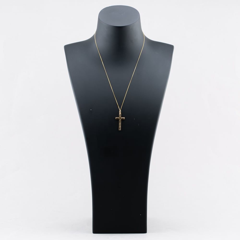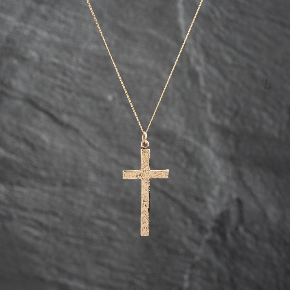 Second Hand 9ct Yellow Gold Engraved Cross Pendant & 18 Inch Curb Chain 43141271 Second Hand 9ct Yellow Gold Engraved Cross Pendant & 18 Inch Curb Chain 43141271