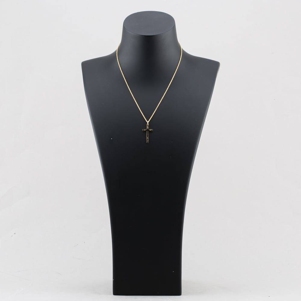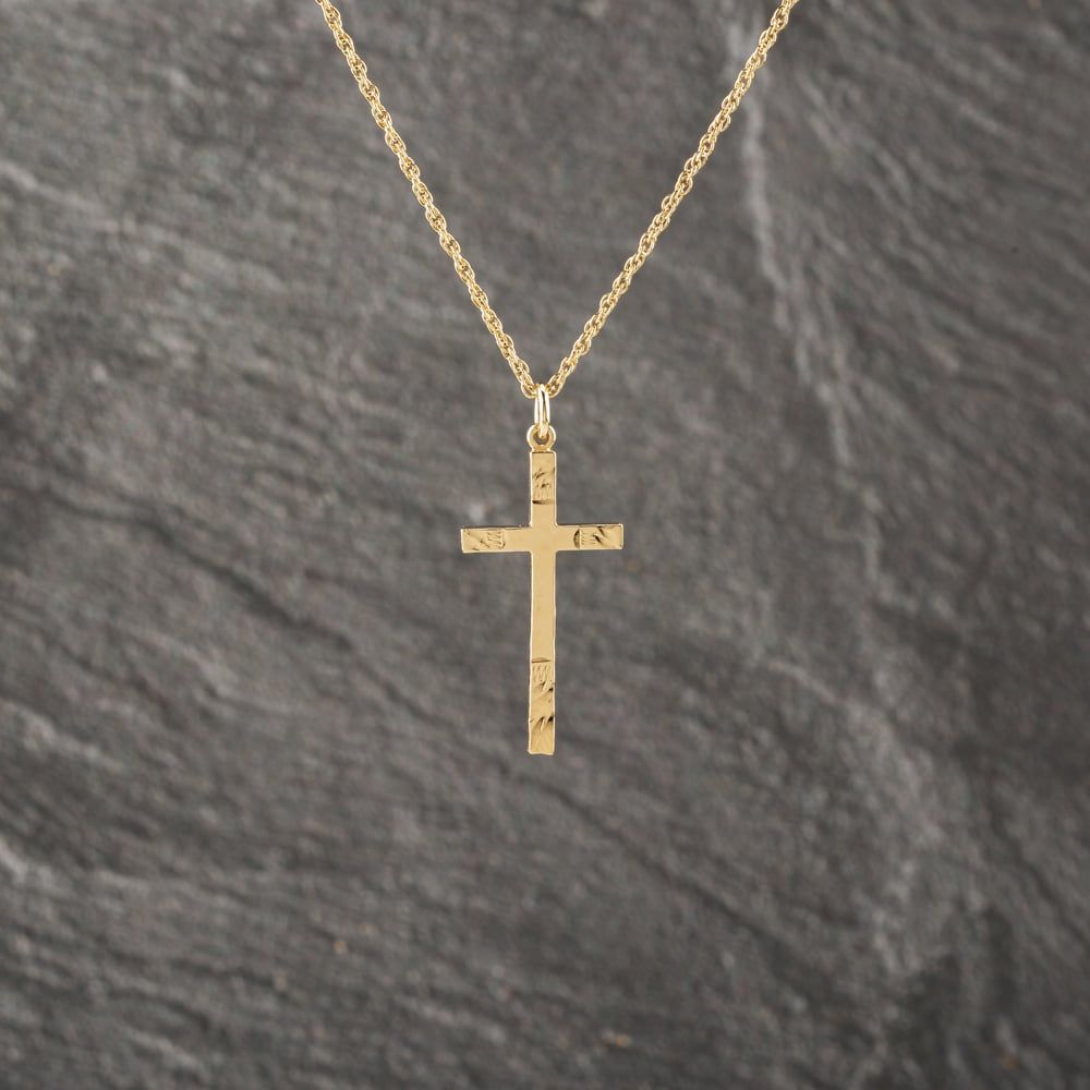 <a href="https://www.thbaker.co.uk/stores/"><b>Click here to find your <font color="6d1a42">nearest store</font></b></a>Second Handhttps://www.thbaker.co.uk/media/catalog/product/4/1/41-14-3181_model_1.jpgadd-to-cartcondition:Yesdisc_no_stock:NoYesNo41143181Second Hand41143181LadiesT H Baker Packaging12 Month WarrantyNoPendant with Chain3.2g18inchCrossPrince of Wales9ct Yellow GoldGoldNo StoneNo Stone{"name":"Klarna","text":"3 payments of \u00a395","imageUrl":"https:\/\/www.thbaker.co.uk\/media\/nosto\/klarna.png"}Second Hand 9ct Yellow Gold Engraved Cross Pendant & 18 Inch Prince Of Wales Chain41-14-31812025-12-27 00:00:00[{"path":"\/Jewellery","url":"\/jewellery\/"},{"path":"\/Seasonal\/Christmas Collection","url":"\/christmas-collection\/"},{"path":"\/Seasonal\/Christmas Collection\/Gifts For Her","url":"\/christmas-gifts-for-her\/"},{"path":"\/Jewellery\/Pendants","url":"\/pendants\/"},{"path":"\/Jewellery\/Pendants\/Cross Necklaces","url":"\/jewellery-cross-necklaces\/"},{"path":"\/Second Hand Collection","url":"\/second-hand\/"},{"path":"\/Second Hand Collection\/Second Hand Jewellery","url":"\/second-hand-jewellery\/"},{"path":"\/Second Hand Collection\/Second Hand Necklaces & Pendants","url":"\/second-hand-necklaces-and-pendants\/"},{"path":"\/Jewellery\/Gold Jewellery","url":"\/gold-jewellery\/"},{"path":"\/Second Hand Collection\/Second Hand Jewellery\/Second Hand Yellow Gold","url":"\/second-hand-yellow-gold-jewellery\/"},{"path":"\/Second Hand Collection\/Second Hand Ladies","url":"\/second-hand-ladies-collection\/"},{"path":"\/Jewellery\/Ladies Jewellery","url":"\/ladies-jewellery\/"},{"path":"\/Second Hand Collection\/Second Hand Necklaces & Pendants\/Second Hand Pendants","url":"\/second-hand-pendants\/"},{"path":"\/Second Hand Collection\/Second Hand Necklaces & Pendants\/Second Hand Necklaces","url":"\/second-hand-necklaces\/"},{"path":"\/Second Hand Collection\/Second Hand Necklaces & Pendants\/Second Hand Crosses","url":"\/second-hand-crosses\/"},{"path":"\/Second Hand Collection\/Second Hand Necklaces & Pendants\/Second Hand Crosses & St. Christopher's","url":"\/second-hand-crosses-and-st-christophers\/"},{"path":"\/Jewellery\/Gold Jewellery\/Yellow Gold Pendants & Necklaces","url":"\/yellow-gold-pendants\/"},{"path":"\/Jewellery\/Gold Jewellery\/Yellow Gold Pendants & Necklaces\/Yellow Gold Crosses","url":"\/yellow-gold-crosses\/"},{"path":"\/Second Hand Collection\/Second Hand Gold","url":"\/second-hand-gold\/"},{"path":"\/Second Hand Collection\/Second Hand Jewellery\/Second Hand 9ct","url":"\/second-hand-9ct-jewellery\/"},{"path":"\/Second Hand Collection\/Second Hand Necklaces & Pendants\/Second Hand Ladies Pendants & Necklaces","url":"\/second-hand-ladies-pendants-and-necklaces\/"},{"path":"\/Second Hand Collection\/Second Hand Necklaces & Pendants\/Second Hand Yellow Gold Pendants & Necklaces","url":"\/second-hand-yellow-gold-pendants-and-necklaces\/"},{"path":"\/Seasonal\/Christmas Collection\/Pre Loved Christmas Gifts","url":"\/pre-loved-christmas-gifts\/"},{"path":"\/Free Gift","url":"\/free-gift\/"}]2026-03-27