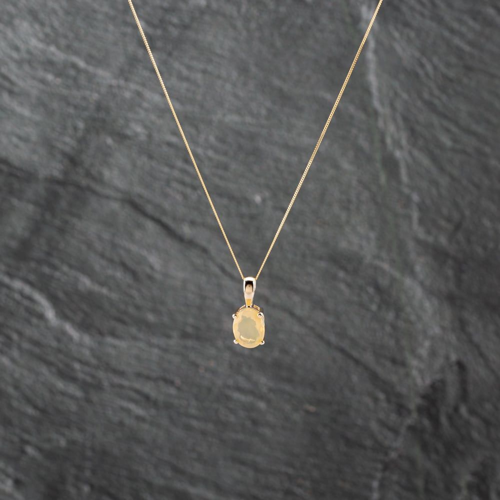 Second Hand 9ct Yellow Gold Ethiopian Opal Oval Pendant & 18 Inch Curb Chain 41142657 Second Hand 9ct Yellow Gold Ethiopian Opal Oval Pendant & 18 Inch Curb Chain 41142657