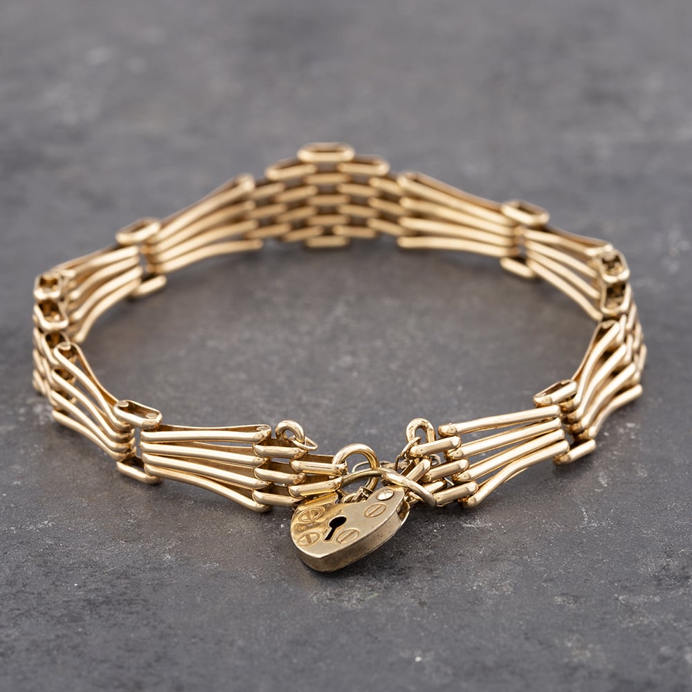 9ct Yellow Gold Fan Design 5 Bar 7.5 Inch Gate Bracelet