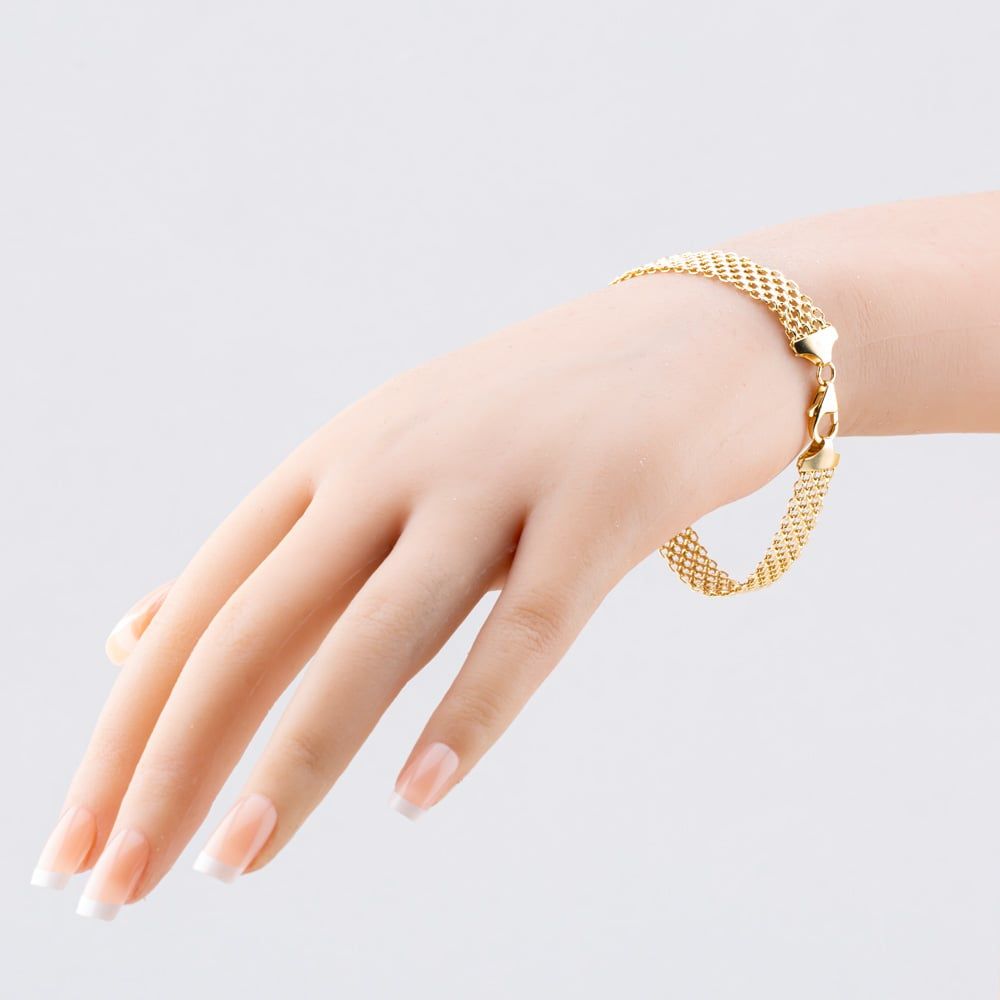 9ct Yellow Gold Flexible three Row Mesh 7.5 Inch Chain Bracelet