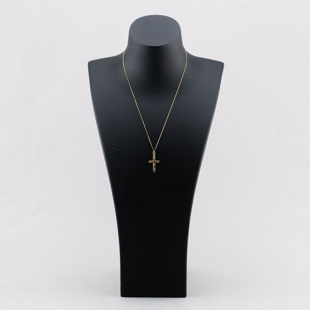 Second Hand 9ct Yellow Gold Foliate Engraved Cross Pendant & 18 Inch Curb Chain 41142901 Second Hand 9ct Yellow Gold Foliate Engraved Cross Pendant & 18 Inch Curb Chain 41142901