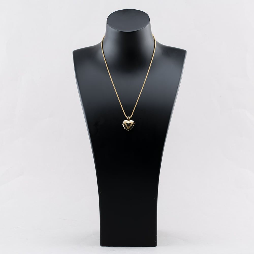 9ct Yellow Gold Foliate Engraved Locket Pendant & 18 Inch Chain