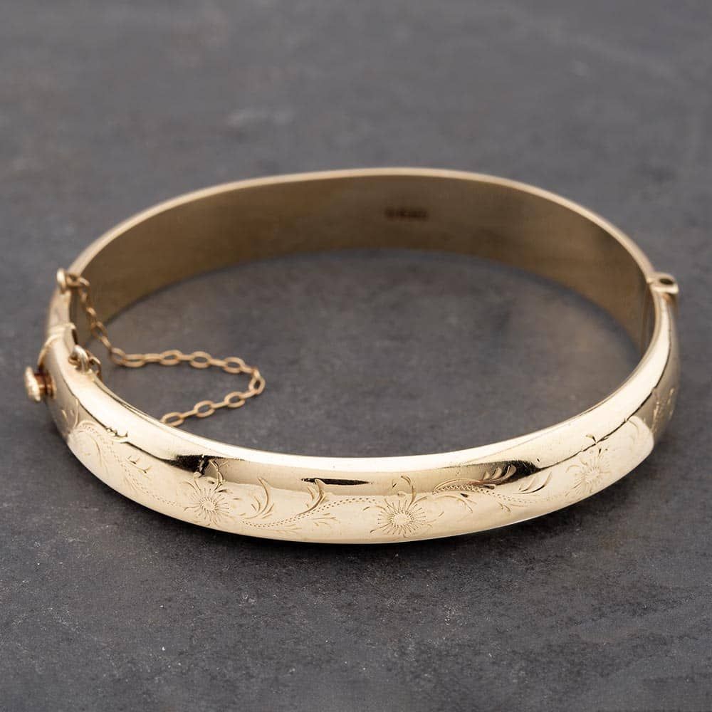 9ct Yellow Gold Foliate Engraved Standard Hinged Bangle