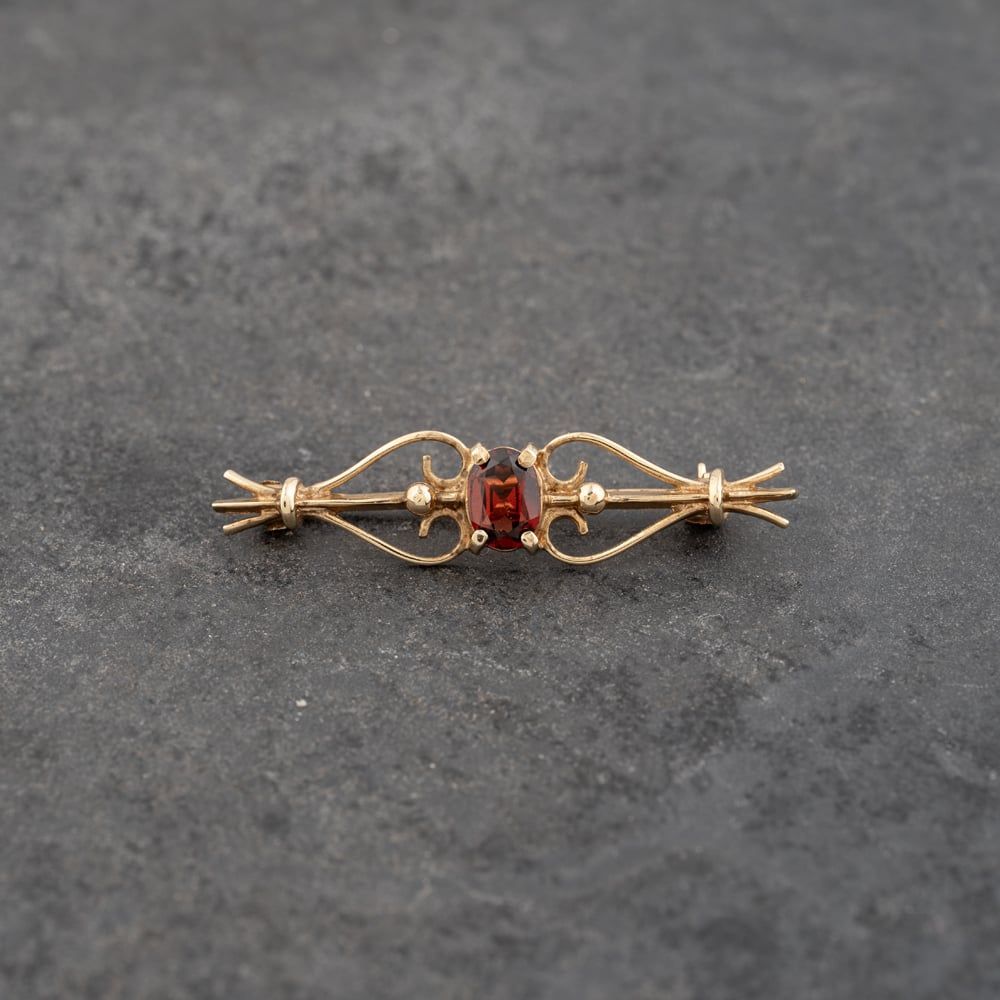 9ct Yellow Gold Garnet Bar Brooch