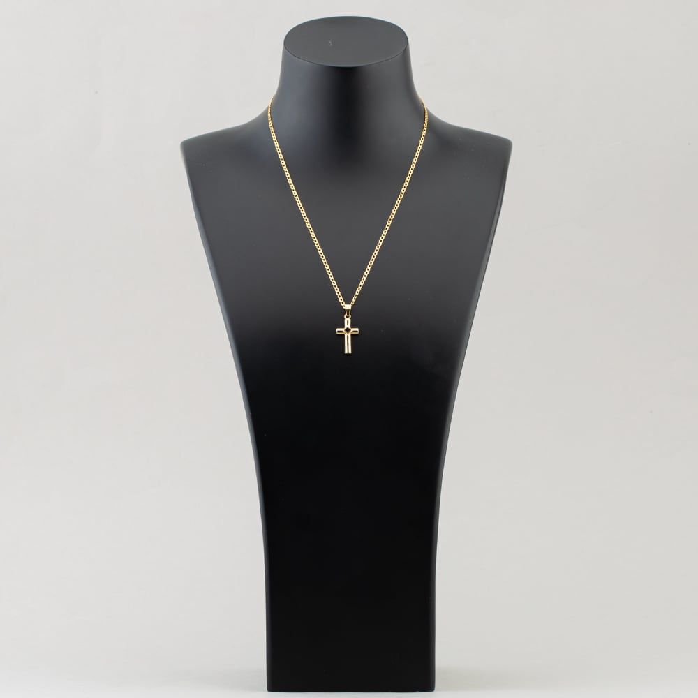 9ct Yellow Gold Garnet Cross Pendant & 18 Inch Curb Chain