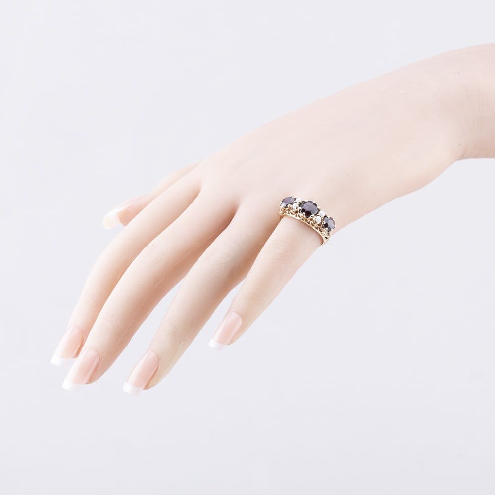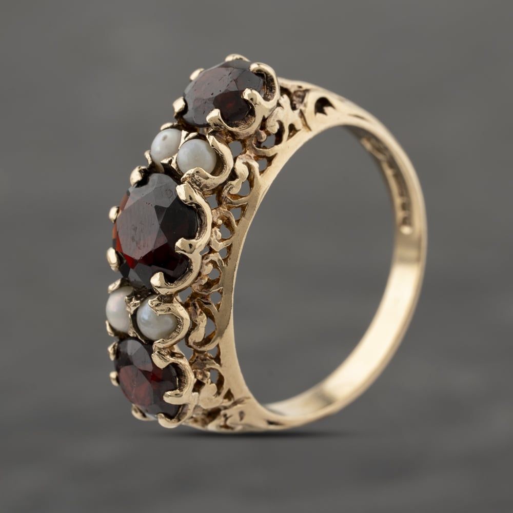 9ct Yellow Gold Garnet & Seed Pearl Seven Stone Ring
