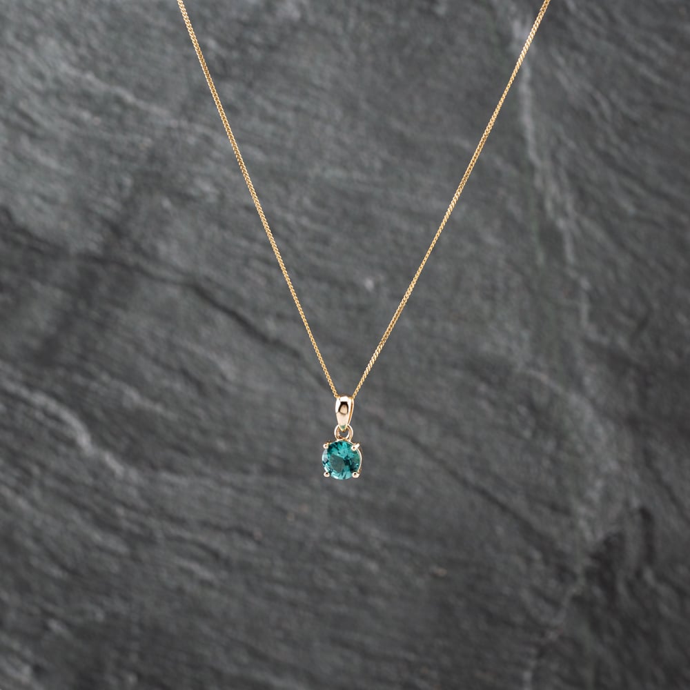 9ct Yellow Gold Glass Round Pendant & 18 Inch Curb Chain