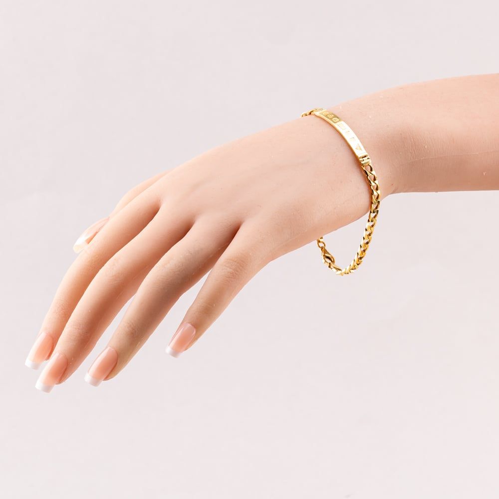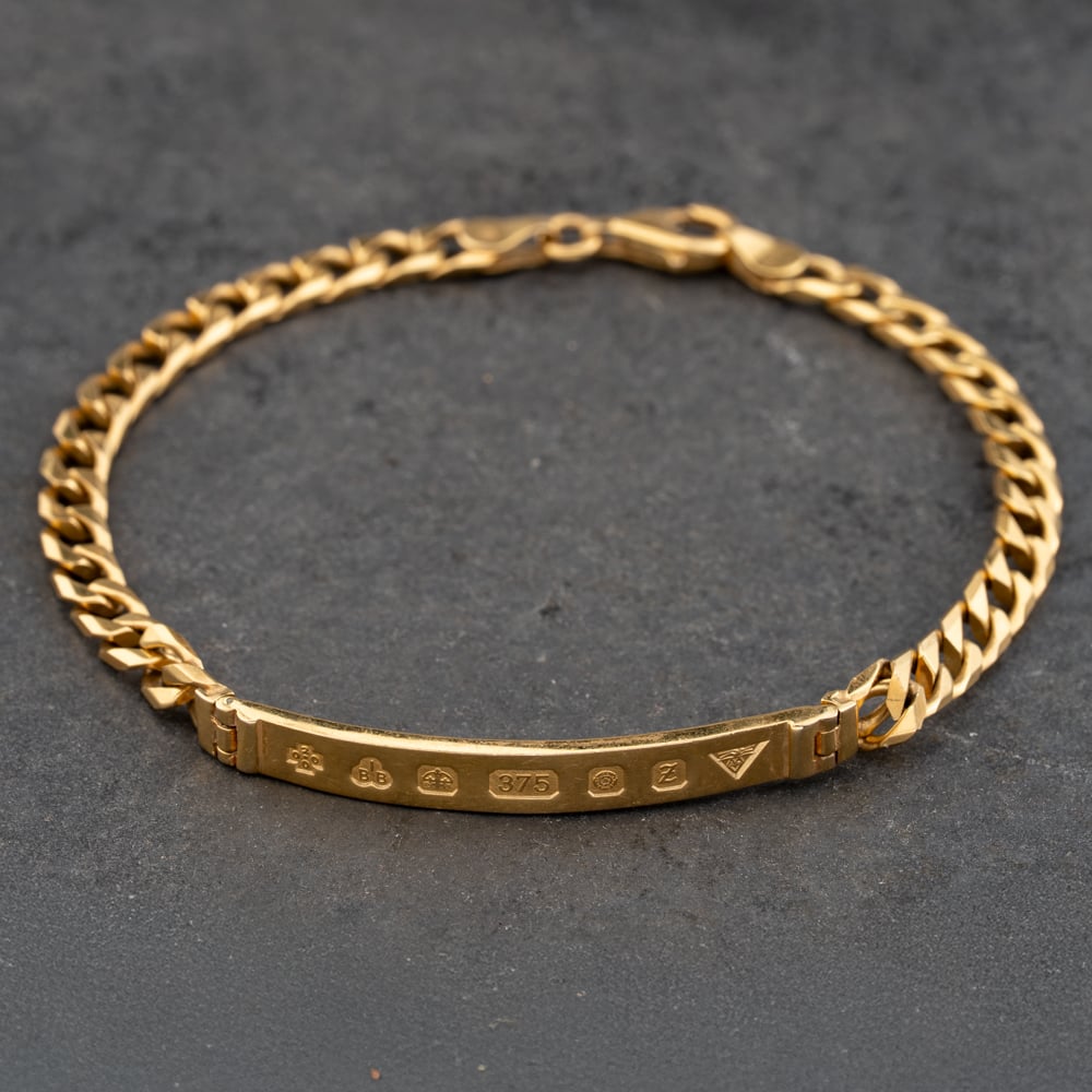 9ct Yellow Gold Gold Bar Style 8 Inch Curb Identity Bracelet