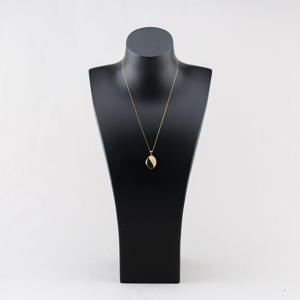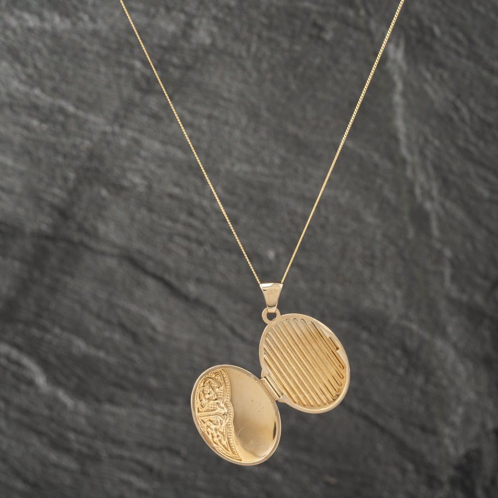 9ct Yellow Gold Half Engraved Oval Locket Pendant & 18 Inch Curb Chain