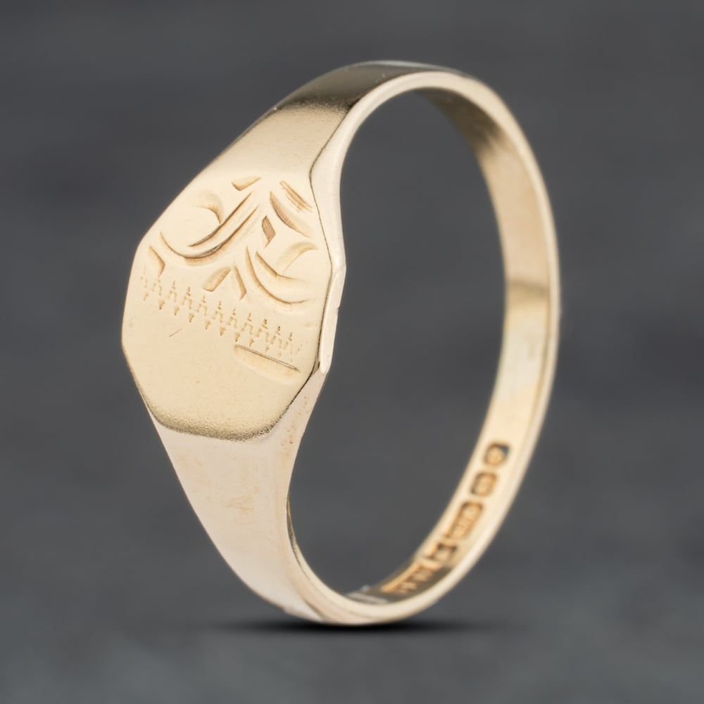 Second Hand 9ct Yellow Gold Half Engraved Signet Ring 4110997 Second Hand 9ct Yellow Gold Half Engraved Signet Ring 4110997