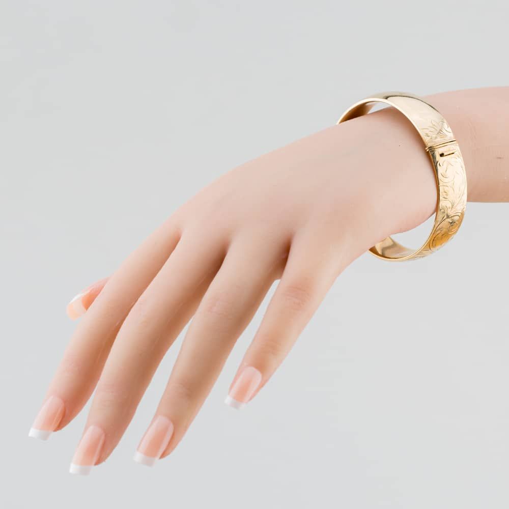 9ct Yellow Gold Half Engraved Standard Hinged Bangle