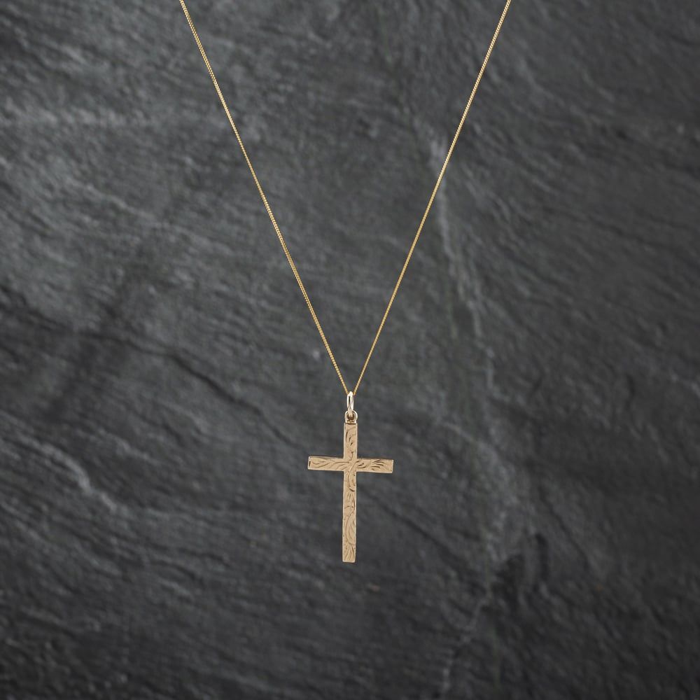 Second Hand 9ct Yellow Gold Hand Engraved Cross Pendant & 18 Inch Curb Chain 41142776 Second Hand 9ct Yellow Gold Hand Engraved Cross Pendant & 18 Inch Curb Chain 41142776