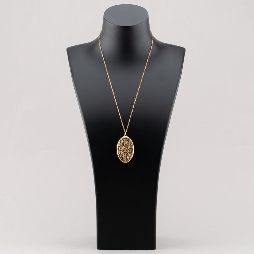 9ct Yellow Gold Hand Engraved Large Oval Locket Pendant & 20 Inch Prince Of Wales Chain